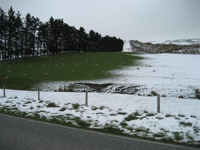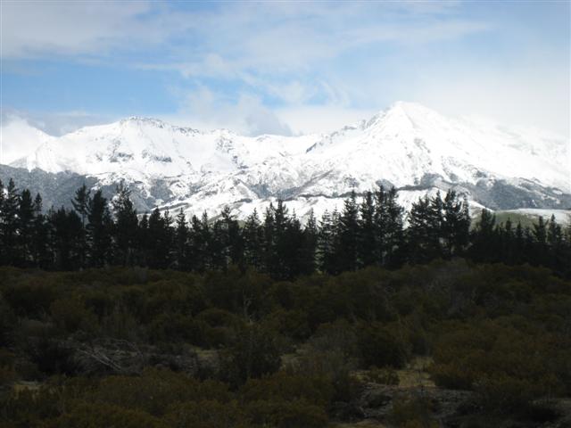 På vejen fra Balclutha var der faldet lidt sne, men heldigvis lå der ikke sne på vejen.De første flotte bjerge begynder at vise sig igen.