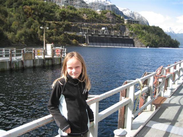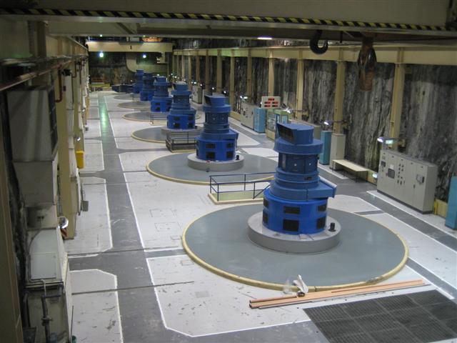 Kraftværket 180m nede i bjerget under søen. Her er generatorhallen. Linnea foran indtaget oppe på søen.