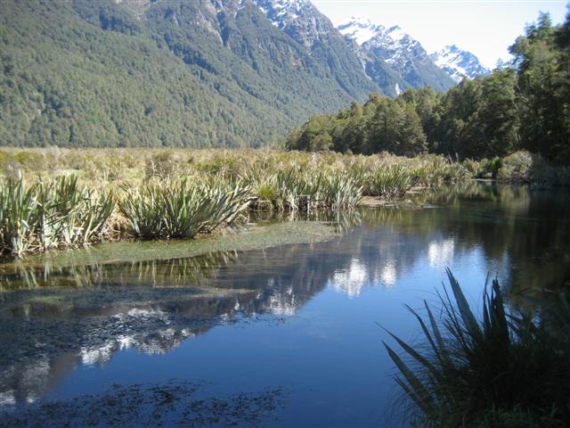 Mirror Lakes på vej fra Te Anau mod Milford Sound