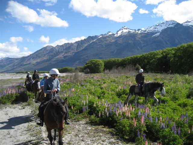 Ridetur ved Glenorchy. Vi var alle ude i to timer+. Ømme bage! Flotte udsigter!