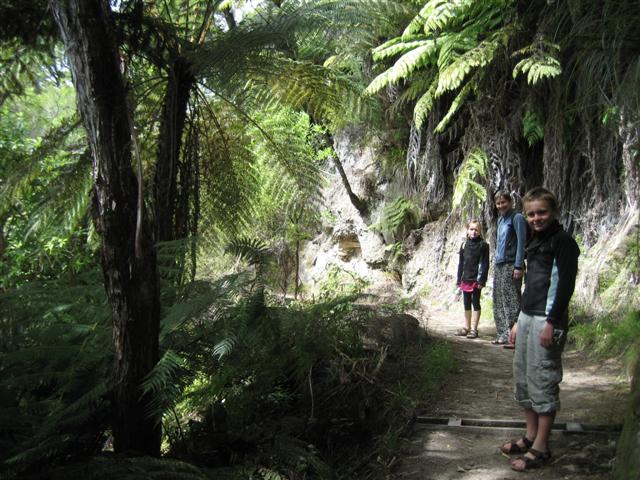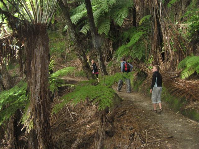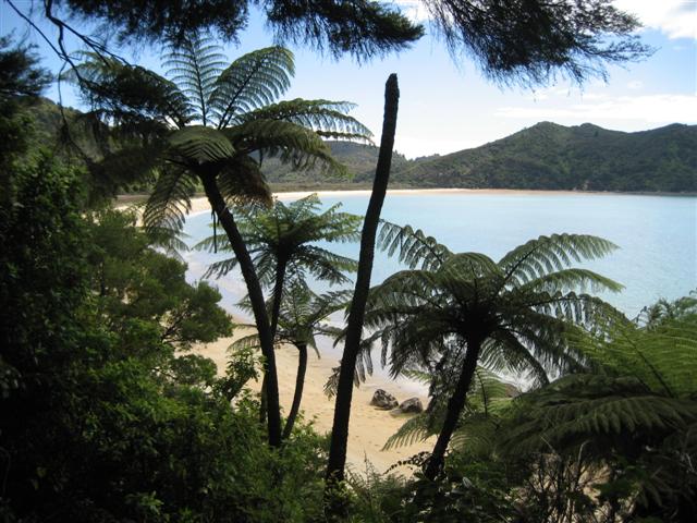 Så er vi klar til afgang. Båden skulle først køres ned på stranden (med os i). Og fra denne bounty-strand skal vores gåtur så starte.Flotte udsigter og flot natur. Træbregnerne er helt specielt smukke (det er ikke palmer!).
