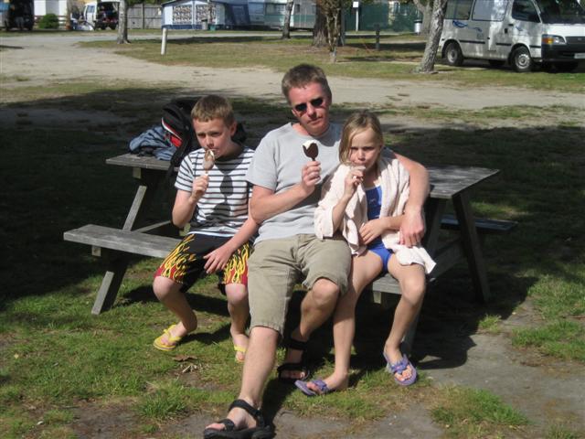 Dagen efter var vandet ikke blevet mere varmt, men modet større. Efter det blev der lige tid og vejr til en is - her er tre på stribe.