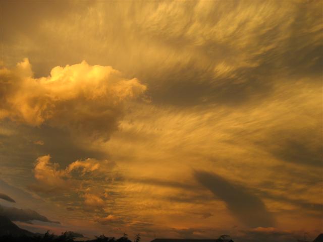 Solnedgang over Kaikoura, New Zealand. En sky laver skygge på undersiden af de andre skyer...