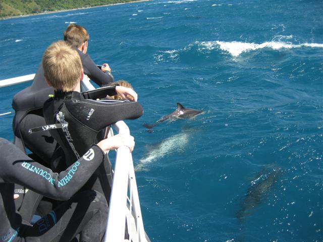 Mod de ikke spiser med kniv og gaffel her i Kaikoura, og hvorfor skal man se på himmlen netop lige her!!!Svømning med delfiner