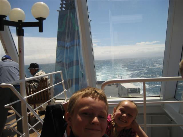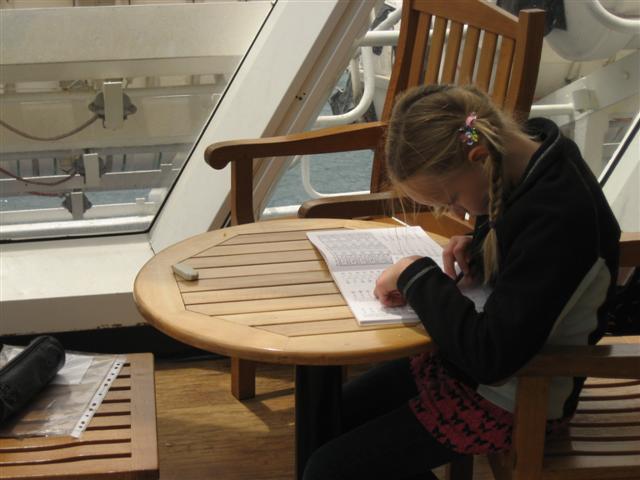 Vi sejlede de tre timer fra Picton til Wellington. Flot vejr på åbent hav.Der blev lavet lidt lektier undervejs.