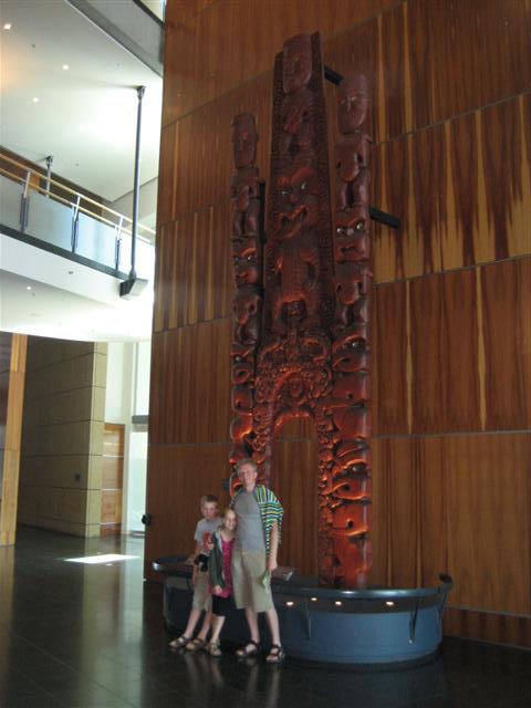 Ved billetskranken møder man denne imponerende "søjle", som er indgangspartiet til en Maori landsby lavet specielt til verdensudstillingen i 1908.Vi spiste frokost inden vi gik på opdagelse.