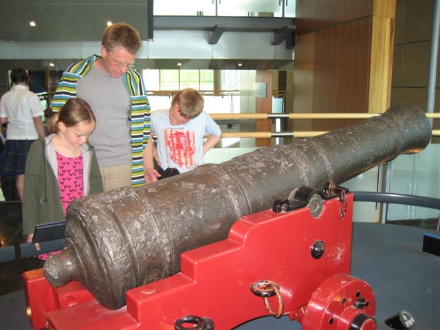 Det eneste de udstiller på Te Papa fra Capt. Cooks skib the Endeavour er en kanon og så ankeret. Her er kanonen, som var blevet smidt over bord et sted for at komme fri af et rev, de var strandet på.