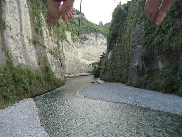 På vej mod vulkanerne midt på sydøen kom vi forbi, den fantastiske Mokai Bridge Gorge, en del af Rangitiki River. Den er brugt i nogle af scenerne i Ringenes Herre. Vi gik op til et udsigtspunkt, mange trapper! Det var ret flot...Og så var der lige "the flying fox"...