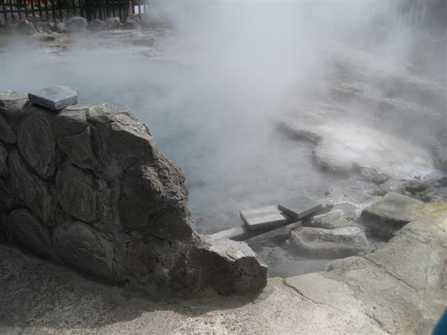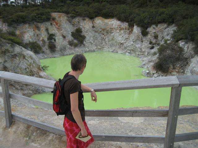 Djævelens badekar med lysegrønt vand - og en kogende mudderpøl. Ikke lige noget man har lyst at stikke sine fingre eller tæer i...
